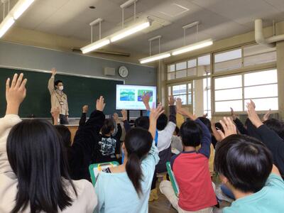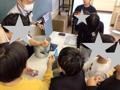 今日は、市の生活環境課の方に来ていただき、水の循環の仕方など、水に関わる基礎知識について話を聞きました。その後、くんできた志楽川の水質を薬品を使って調べました。調査した結果、川の水はそこまで汚いわけではないけれどきれいでもないということが分かりました。この結果を受けて今後の学習がどう展開されていくのか、楽しみです。