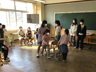 11月14日 全校 なかよし班遊び 投稿: 学校管理者 (13:37) 今日は久しぶりのなかよし班遊びでした。今回は4年生が遊びを考えてくれました。 久しぶりでしたが、運動会でより打ち解けた雰囲気ができている様子が見られ、また、高学年が低学年を思いやる様子が自然になったように思います。 楽しいひと時を過ごしました。 -