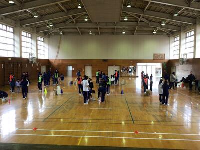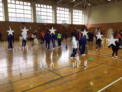 12月10日 2年生 小高連携 投稿: 学校管理者 (15:39) 今日は、東舞鶴高校の生徒の皆さんが、2年生にニュースポーツを教えに来てくださいました。教えていただいたのは、「モルック」というスポーツです。 手作りの道具を使いながら、高校生に進行してもらって体験するうちに、どんどん楽しくなっていく2年生。高校生ともハイタッチしながらみんなで笑顔になれた時間となりました。 -