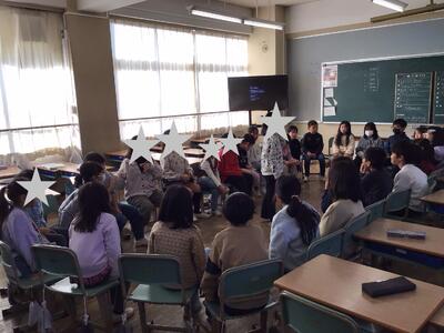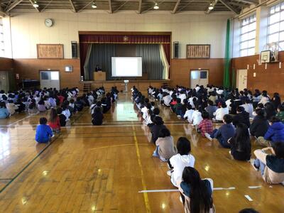 生徒指導担当の先生からは「もあいじーさん」の振り返りと、冬休みの過ごし方についてのお話がありました。お金の使い方や地域での過ごし方、ネットゲームやSNSの扱い方などについて確認しました。