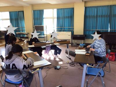 1月17日 子育て支援協議会 大正琴教室 投稿: 学校管理者 (11:47) 子育て支援協議会主催の大正琴教室を行いました。 先生に音の出し方を教えていただき、早速、いろいろな曲に挑戦しました。「きらきらぼし」「ちょうちょう」「チューリップ」「かえるの合唱」と、1時間で4曲も演奏することができました。 初めての人も、これまで演奏の経験のある人も集中して取り組み、あっという間の楽しい時間を過ごしました。 -