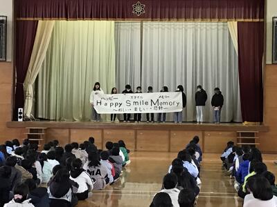 6年生を送る会実行委員会からは、スローガンの発表がありました。「Happy Smile Memory 〜嬉しい 楽しい 感動~」に込められた思いも全校に伝えられ、後の感想交流でも、このスローガンに向かって発表をがんばりたいという声がありました。