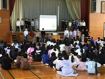 4年生は総合的な学習の時間に学んだ志楽川について発表しました。実際に現地に行って調べた川に落ちているゴミについて、地域の方に教えていただいた志楽川に生息する生き物についてなど、分かりやすく発表することができました。