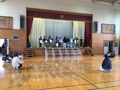 2月19日 全校 送る会に向けて 投稿: 学校管理者 (18:50) 6年生を送る会が迫ってきました。各学年の練習にも熱が入ります。 台詞や立ち位置、演奏の仕方など、細かい部分の確認を体育館で行っています。 1〜5年生は6年生のことを思って、6年生は送られる側としてどのように会に臨むかを考えて練習しています。 -
